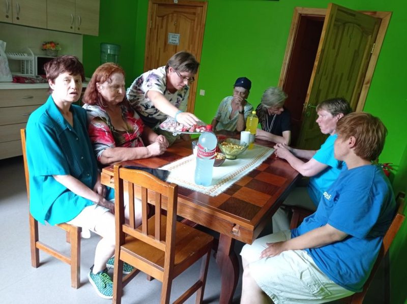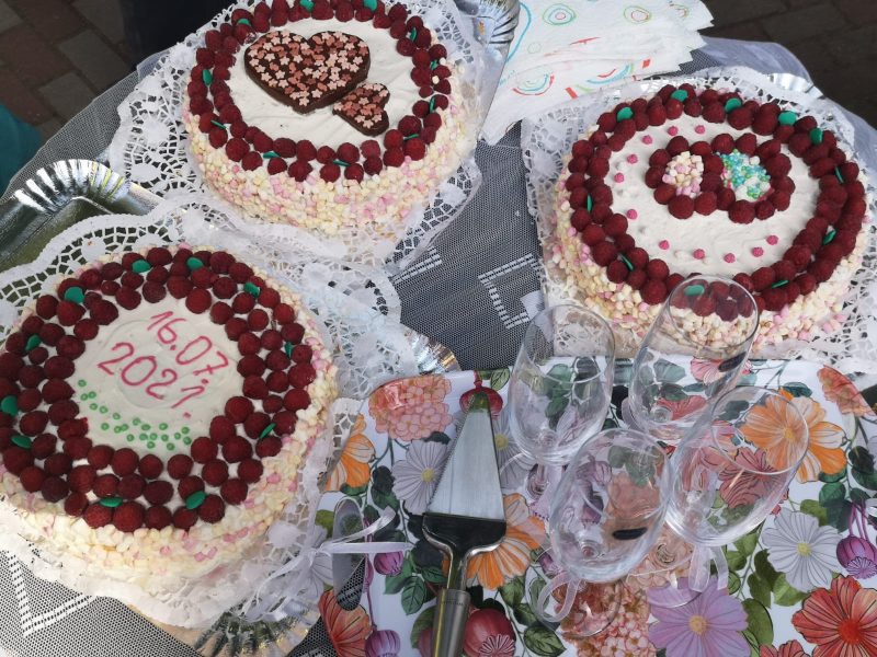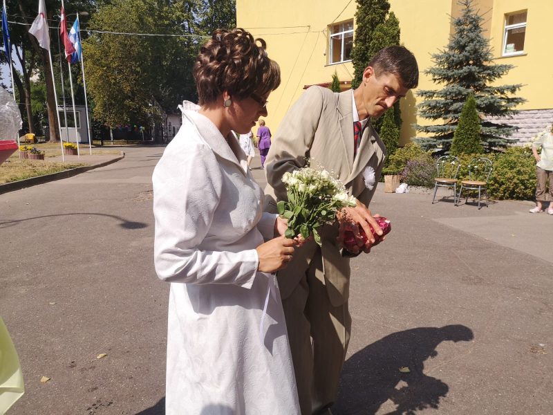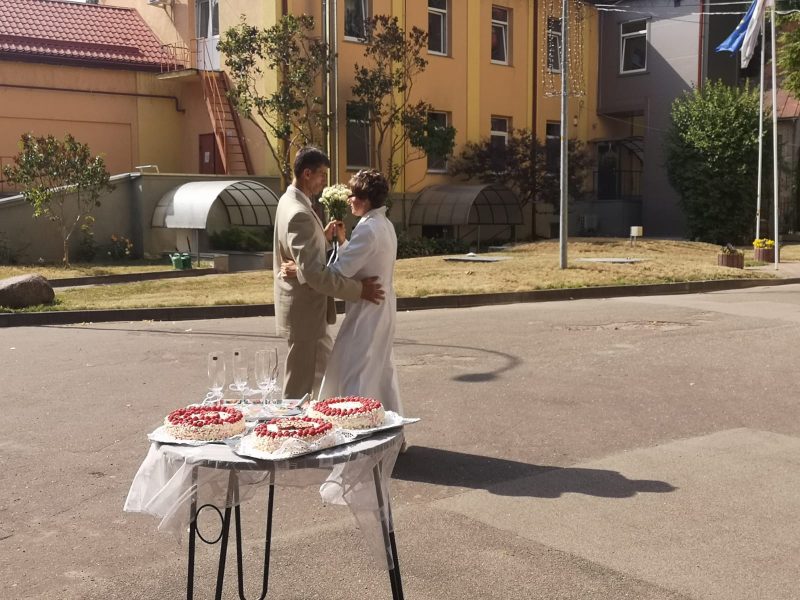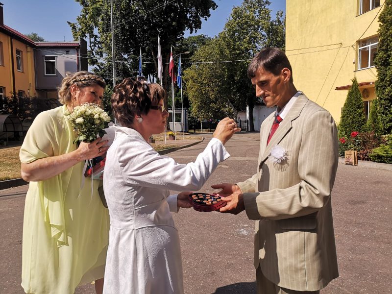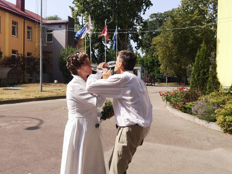 2021.gada 16.jūlijs bija ļoti īpašs mūsu klientiem Gunai un Guntaram. Šo dienu viņi bija izvēlējušies, lai apliecinātu savas jūtas un veidotu ģimeni. Viņu draudzība aizsākās gadu atpakaļ un ikdienas dzīve, darāmie darbi un kopīgās intereses pamazām satuvināja. Kopējs lēmums par kāzām tika pieņemts pavasarī. Pirmais, ko abi jaunieši izdarīja, lai īstenotu mērķi un parādītu apkārtējiem, ka tā nav tikai aizraušanās – viņi nopirka gredzenus. Pārrunas ar sociālajiem darbiniekiem un tuviniekiem tikai pastiprināja apņemšanos būt kopā. Darbinieki un klienti no sirds centās iepriecināt Gunu un Guntaru svētku dienā. Bija gan Vecmeitu un Vecpuišu ballītes, pušķots kāzu auto, balta līgavas kleita, torte un pirmā deja 🙂 Lai saskanīga un mīļa dzīvošana!!!