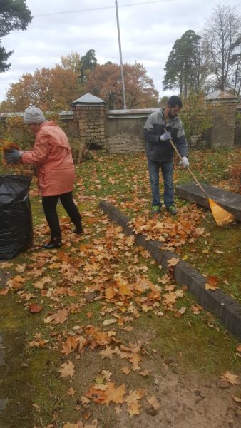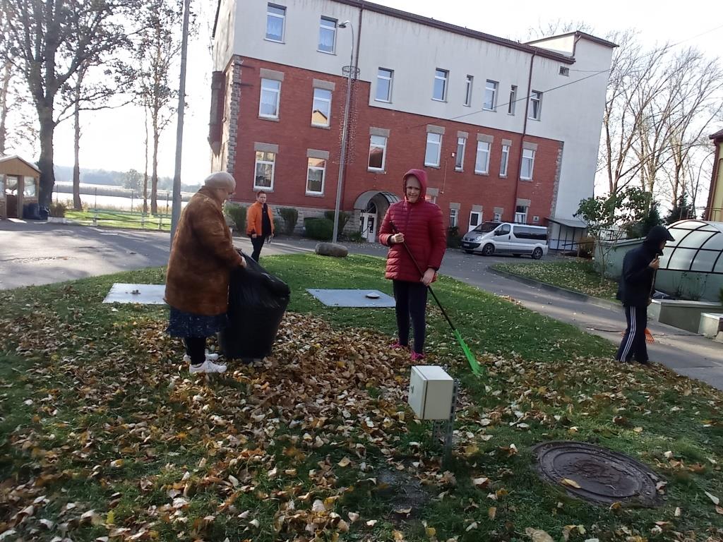 Ceturtā talka – Centra āra teritorijas sakopšanas darbi, lapu grābšana.