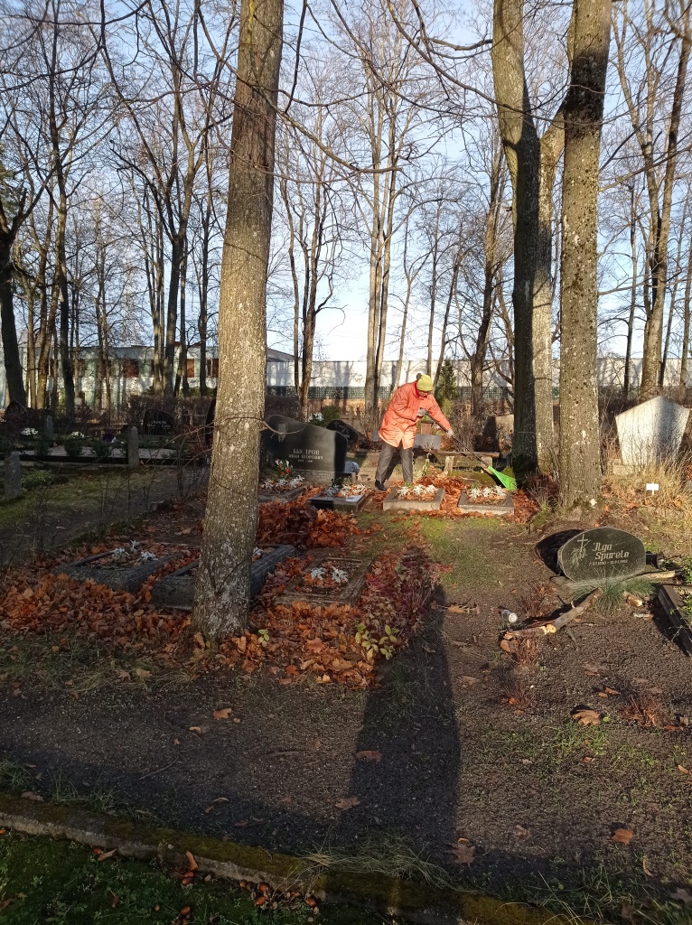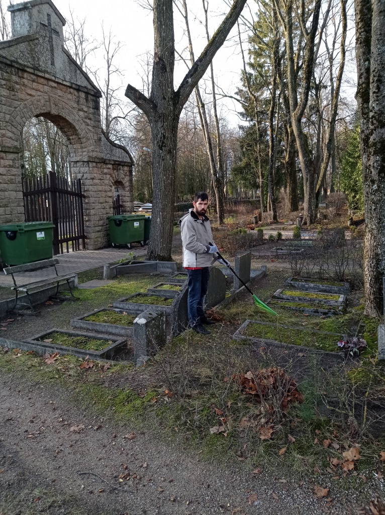 Klienti veltīja savu brīvo laiku, lai sakoptu karavīru brāļu kapu kopiņas – no sūnām tika notīrītas plāksnītes un apmalītes, sagrābtas lapas.